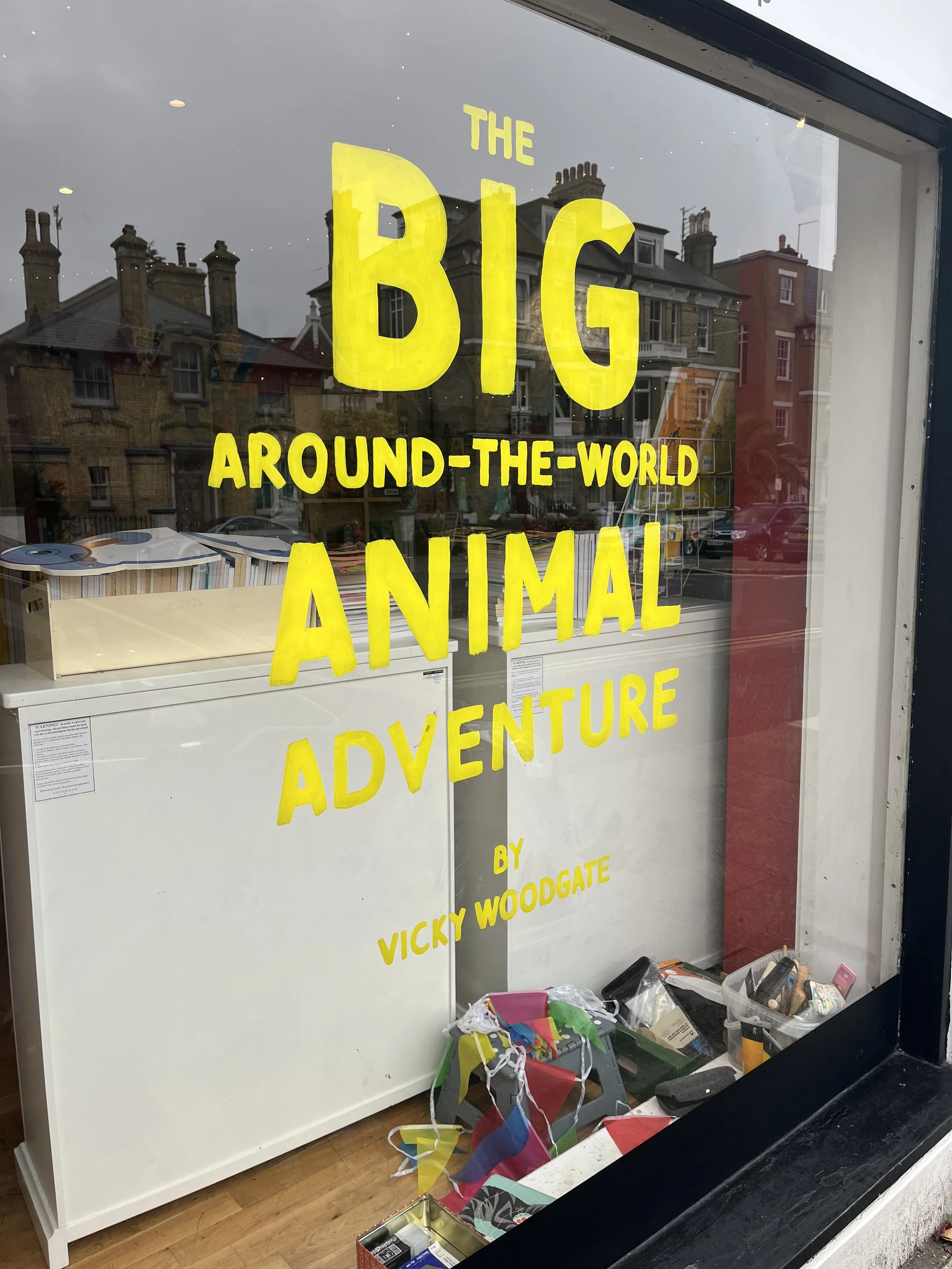 Painted a window at The BOOK NOOK in Hove, featuring Leopold from The Around-The-World Animal Adventure